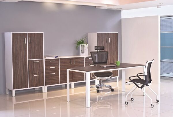 - Cubiertas en aglomerado melaminico de 16 mm de espesor para escritorios y credenzas.