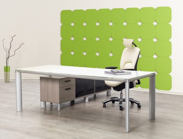 - Cubiertas en aglomerado melamínico ambas caras de 28 mm de espesor para escritorios.