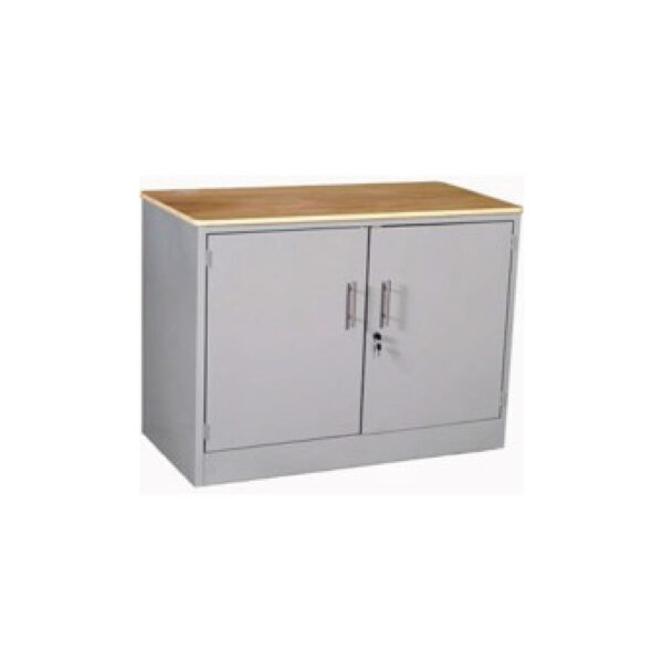 COMODA METALICA DE DOS PUERTAS Y CERRADURA CON 1 ENTREPAÑO QUE HACEN DOS CLAROS. FABRICADO EN LAMINA de acero CAL. 22. acabado en pintura electrostática horneada a 220 grados centígrados con previo tratamiento de fosfatizantes y anti desengrasante