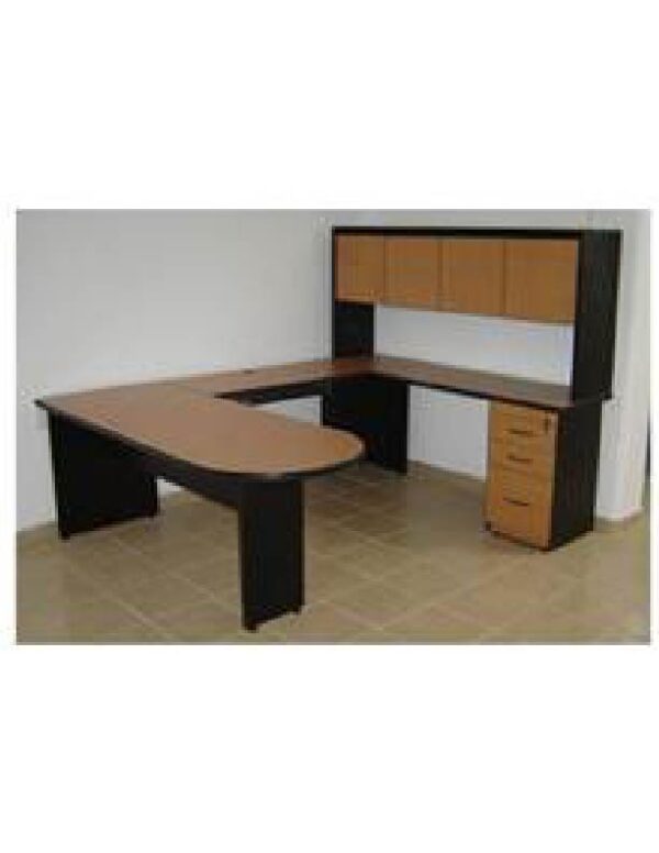 ESCRITORIO DIRECTIVO, MEDIDAS SOBRE DISEÑO FABRICADO EN MADERA INDUSTRIALIZADA EN 28MM EN COLOR A ELEGIR TRASERA CON CAJONERA FIJA DE DOS CAJONES PAPELEROS Y UN CAJON ARCHIVERO,SOBRE LIBRERO CON UN HUECO PARA SALVAGUARDA Y DOS PUERTAS ABATIBLES.