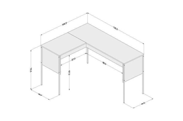 • Medidas: 75.5 x 104.5 x 135.5 x 44.5 x 44.5