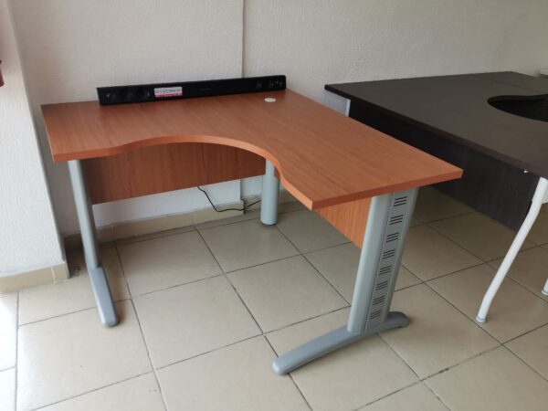 ESQUINERO CON CUBIERTA Y FALDON FABRICADO EN MADERA INDUSTRIALIZADA EN 28M M EN COLOR A ELEGIR, PATA METALICA MIAMI EN COLOR GRIS.