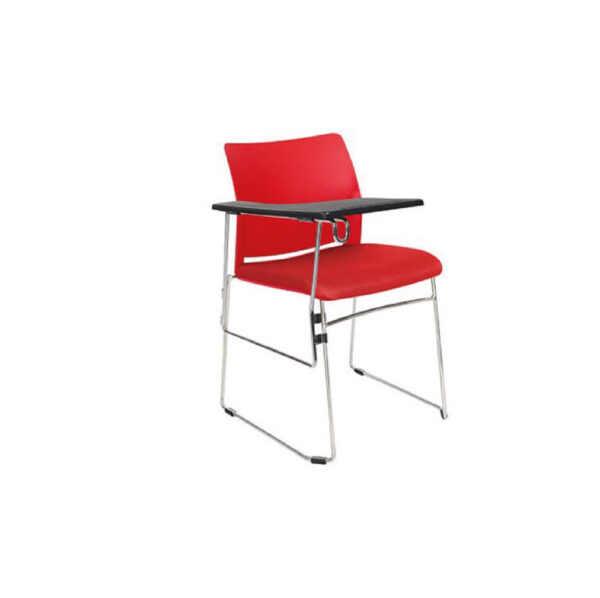 Pupitre de capacitación con asiento y respaldo de polipropileno de alta resistencia, paleta abatible en color negro. Base tubular cromada.