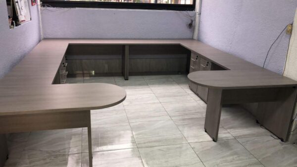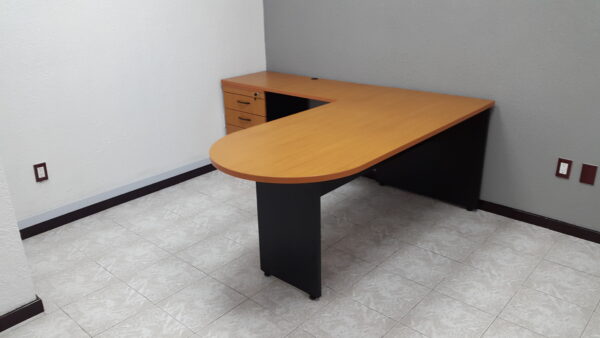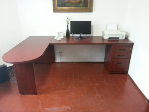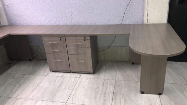 ESCRITORIO EJECUTIVO EN L OVAL O RECTO EN MEDIDAS SOBRE DISEÑO FABRICADO EN MADERA INDUSTRIALIZADA LATERAL CON CAJONERA FIJA, OPCIONAL 2 CAJONES PAPELEROS O CON UN HUECO PAPELERO UN CAJON PAPELERO Y UN CAJON ARCHIVERO EN 28MM EN COLOR A ELEGIR.