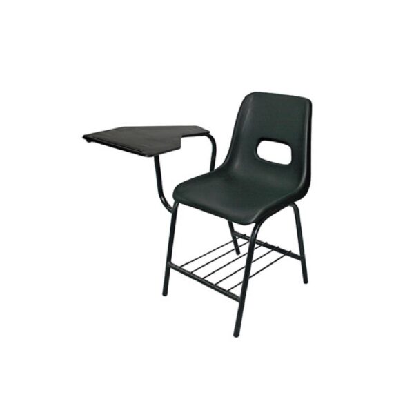 Pupitre de capacitación concha de polipropileno paleta fija en color negro. Base tubular negra