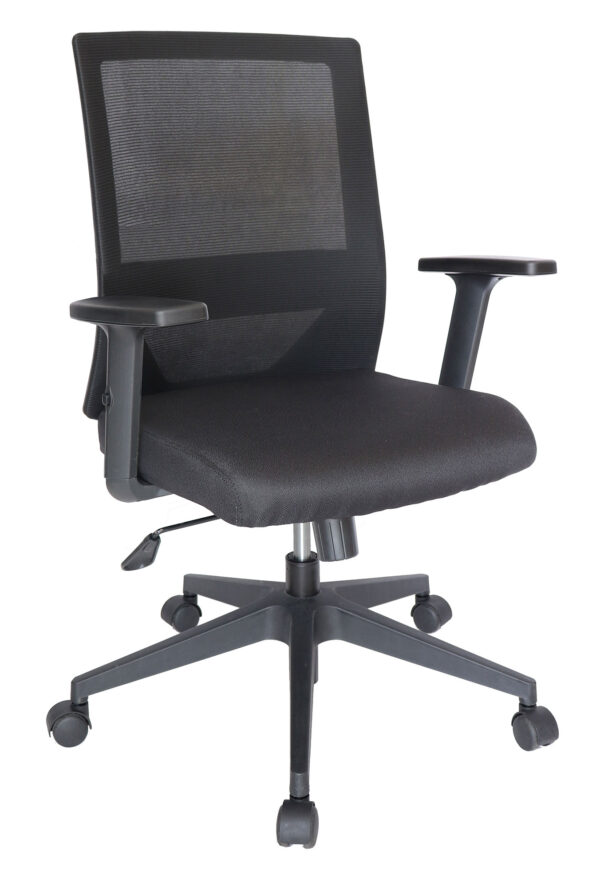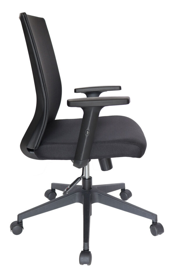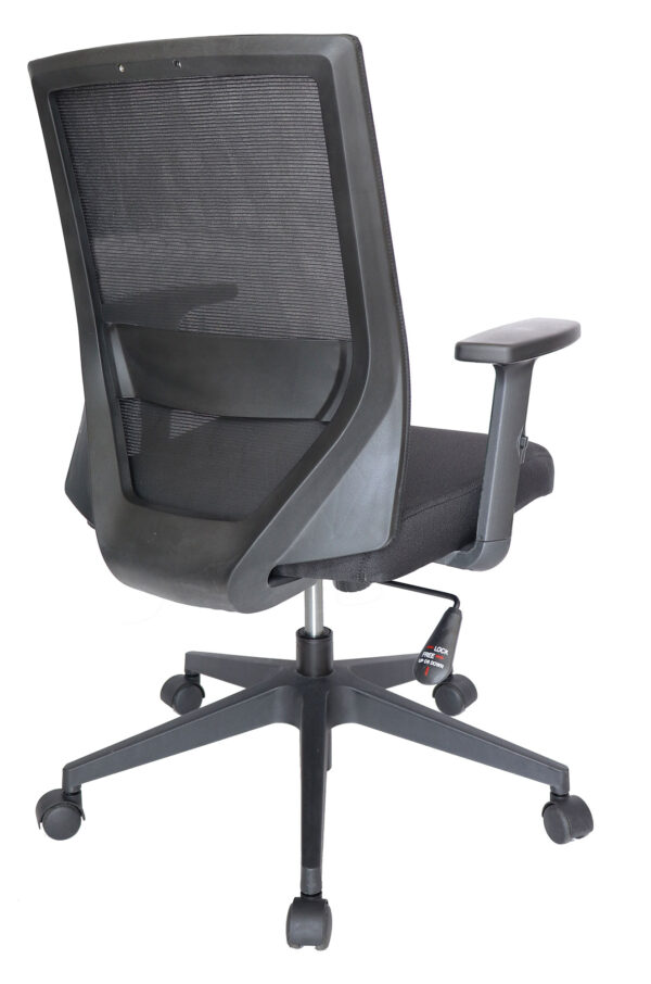 - Tapiz respaldo de malla de color negro y asiento en tela color negro.