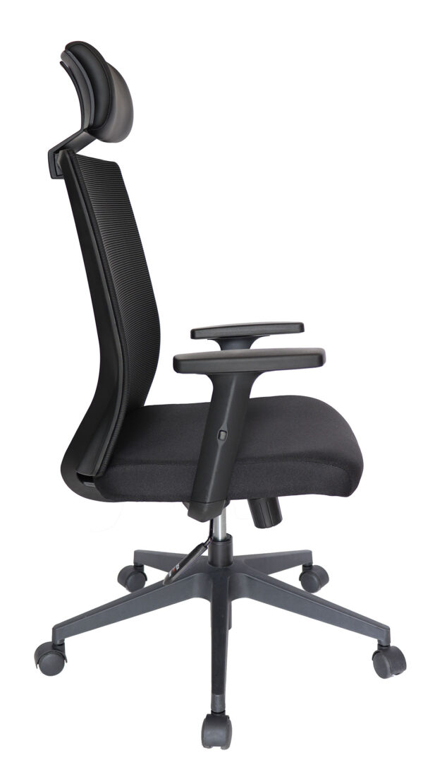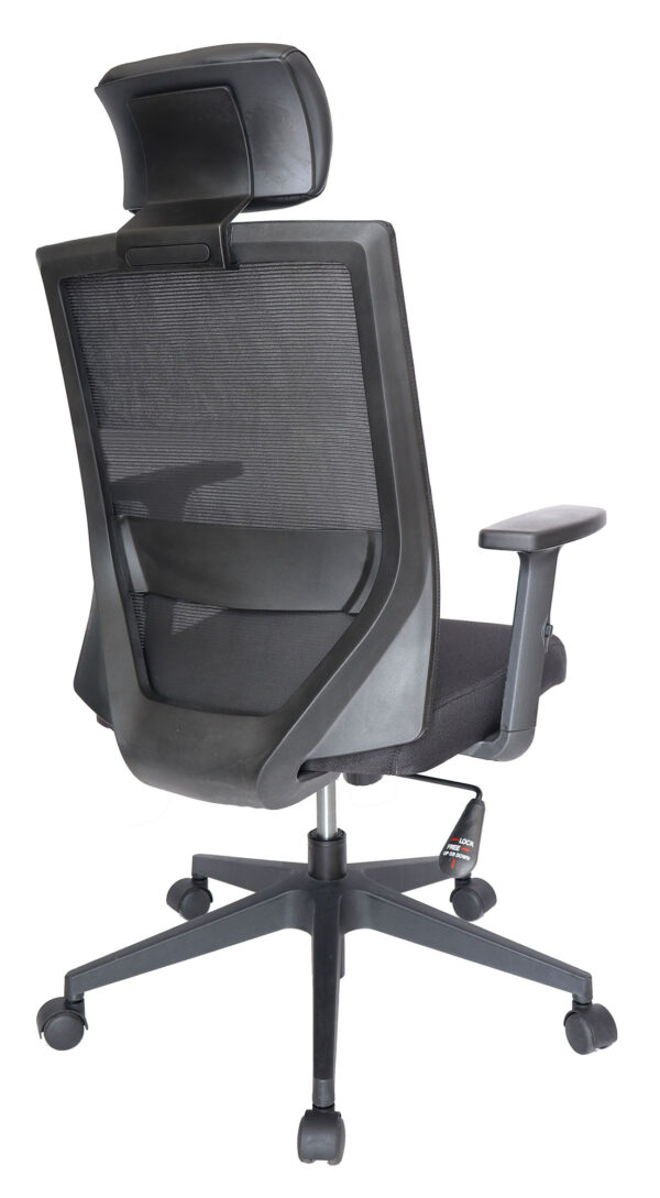 - Respaldo en malla de diseño ergonómico con cabecera acojinada y tapizada.