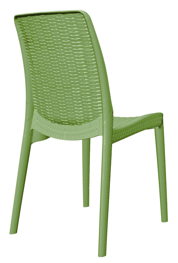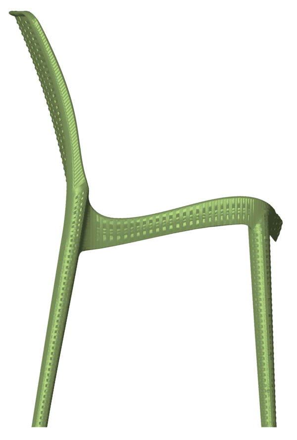 - Patas, asiento y respaldo de una sola pieza en polipropileno de alta resistencia y duración para intemperie, resistente a los rayos ultravioleta.