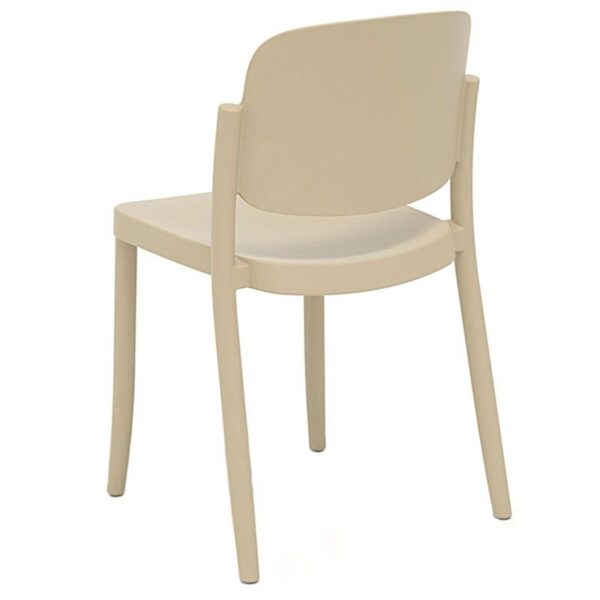 - Patas, asiento y respaldo de una sola pieza en polipropileno de alta resistencia y duración.