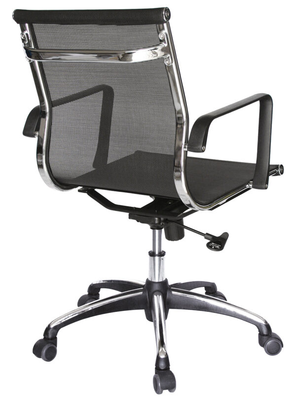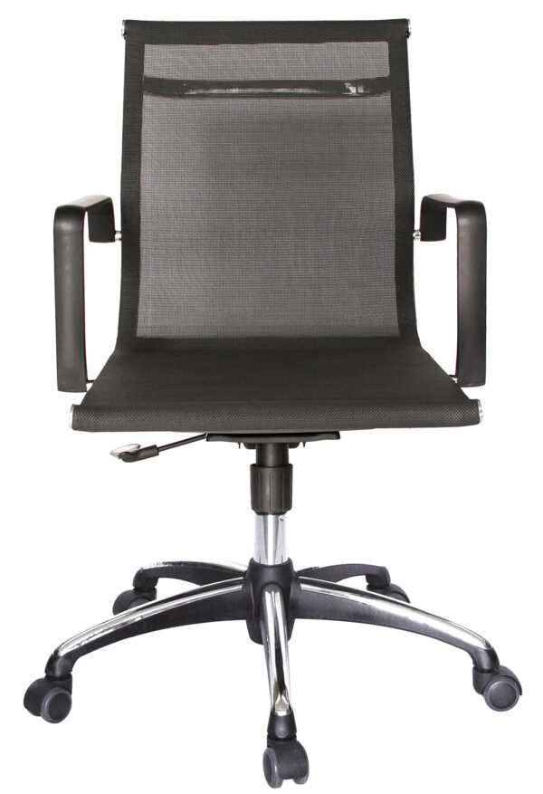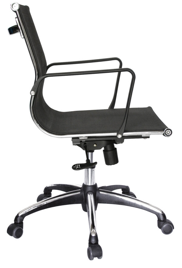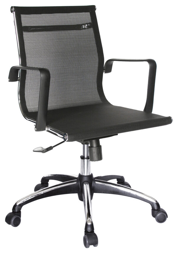 - Base estrella de 5 puntas en poliamida con cubierta de lámina de acero terminado en cromo, rodajas tipo dual y/o regatones.