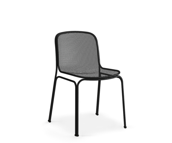 - Asiento y respaldo de una sola pieza en malla de acero moldeada de alta resistencia y duración.