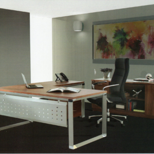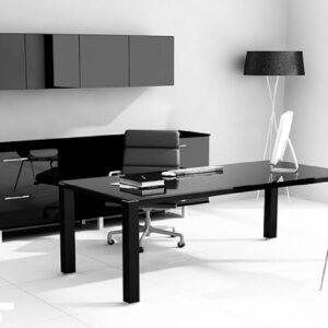 - Estructura metálica, patas disponibles en negro texturizado y cromo, refuerzos en aluminio y travesaños solo disponibles en negro texturizado groomet rectangular en polipropileno color negro o gris (no aplica para cubiertas de cristal).